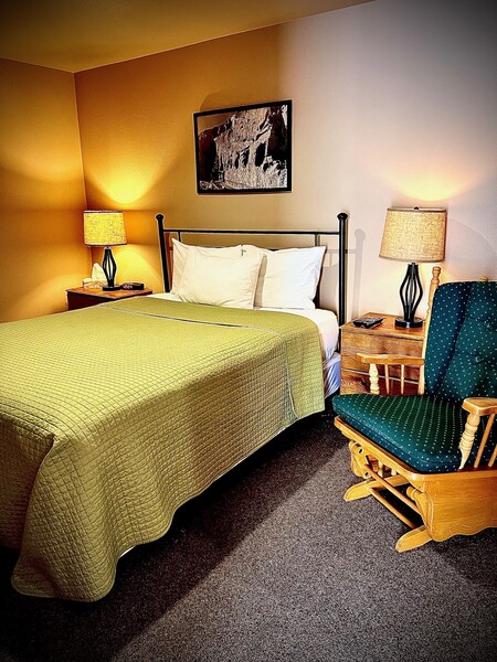 Columbia River Inn is nestled directly across from the Grand Coulee Dam and Visitor's Center; with a lovely two-tiered park and walking path, it is arguably one of the most breathtaking sights in Washington State! The Visitor's Center; located in the park, offers an abundance of knowledge about the dam and the people who built it; with tons of educational activities for kids and adults alike. Our Inn offers 36 charming and eclectic rooms, ranging from a single-queen sized room to a two-bedroom apartment style suite, and all sizes in-between. We have the space you need!