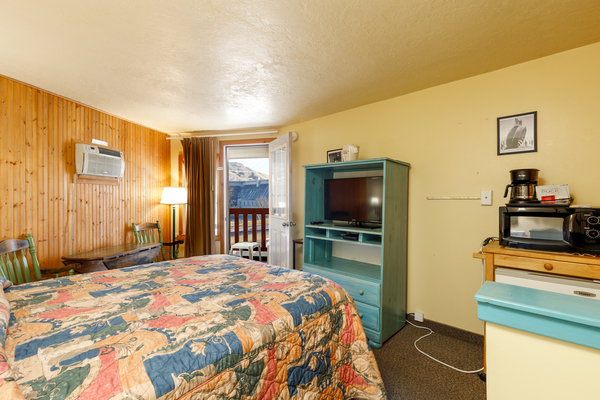 Each Jacuzzi suite has one queen-sized bed, a refrigerator, microwave, coffee maker, and hair dryer, with a two-person jetted tub in living area. All Jacuzzi suites have a private balcony overlooking the Grand Coulee Dam. Please note: all Jacuzzi suites are located on the 2nd level, no elevator on site, you must climb one flight of stairs to access. Please call 1-800-633-6421 with any special requests or needs. Must show card to get AAA or AARP discount.